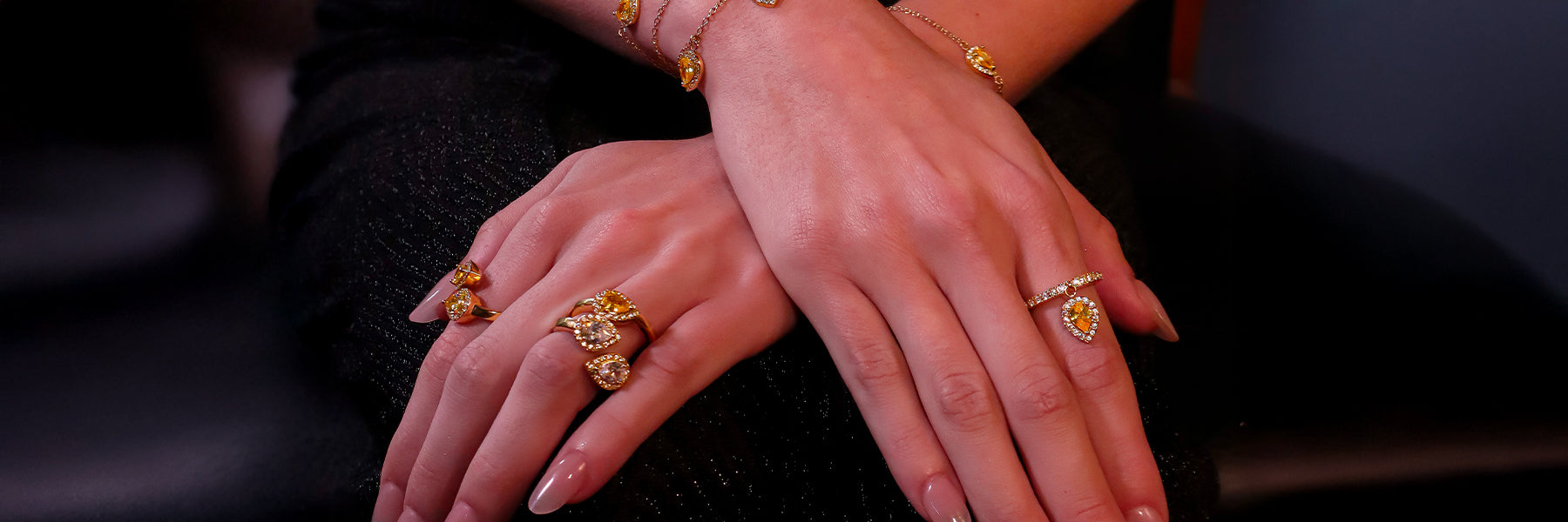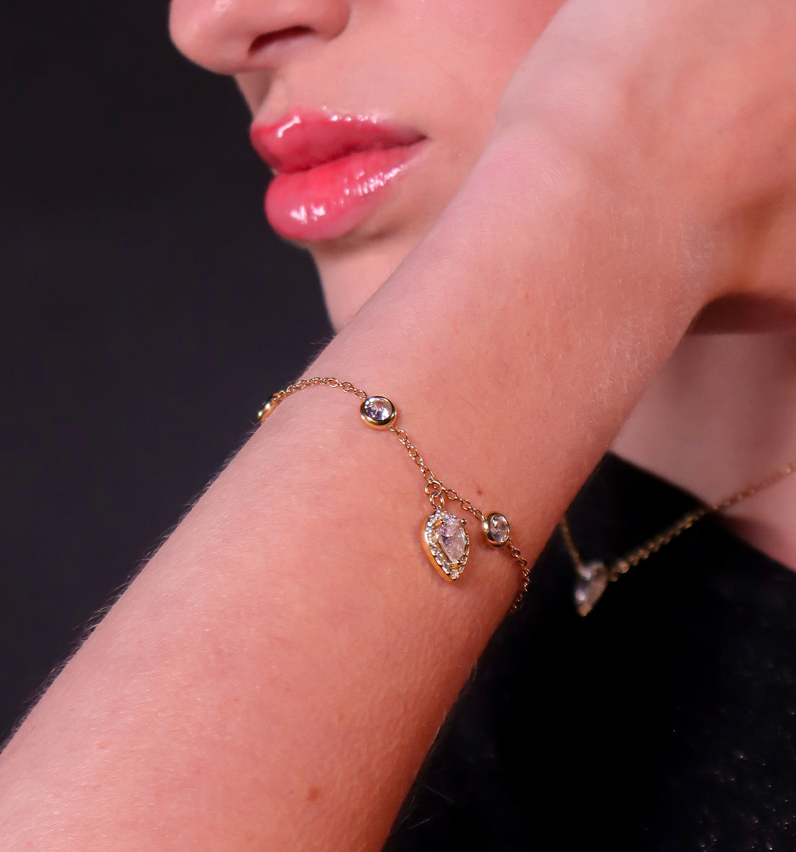 Des bijoux précieux à l’éclat intemporel, sublimés par des oxydes de zirconium vert, violet, blanc et jaune, taillés en forme de poire. Des pièces fines et lumineuses, pensées pour être portées, aimées… et transmises de génération en génération.