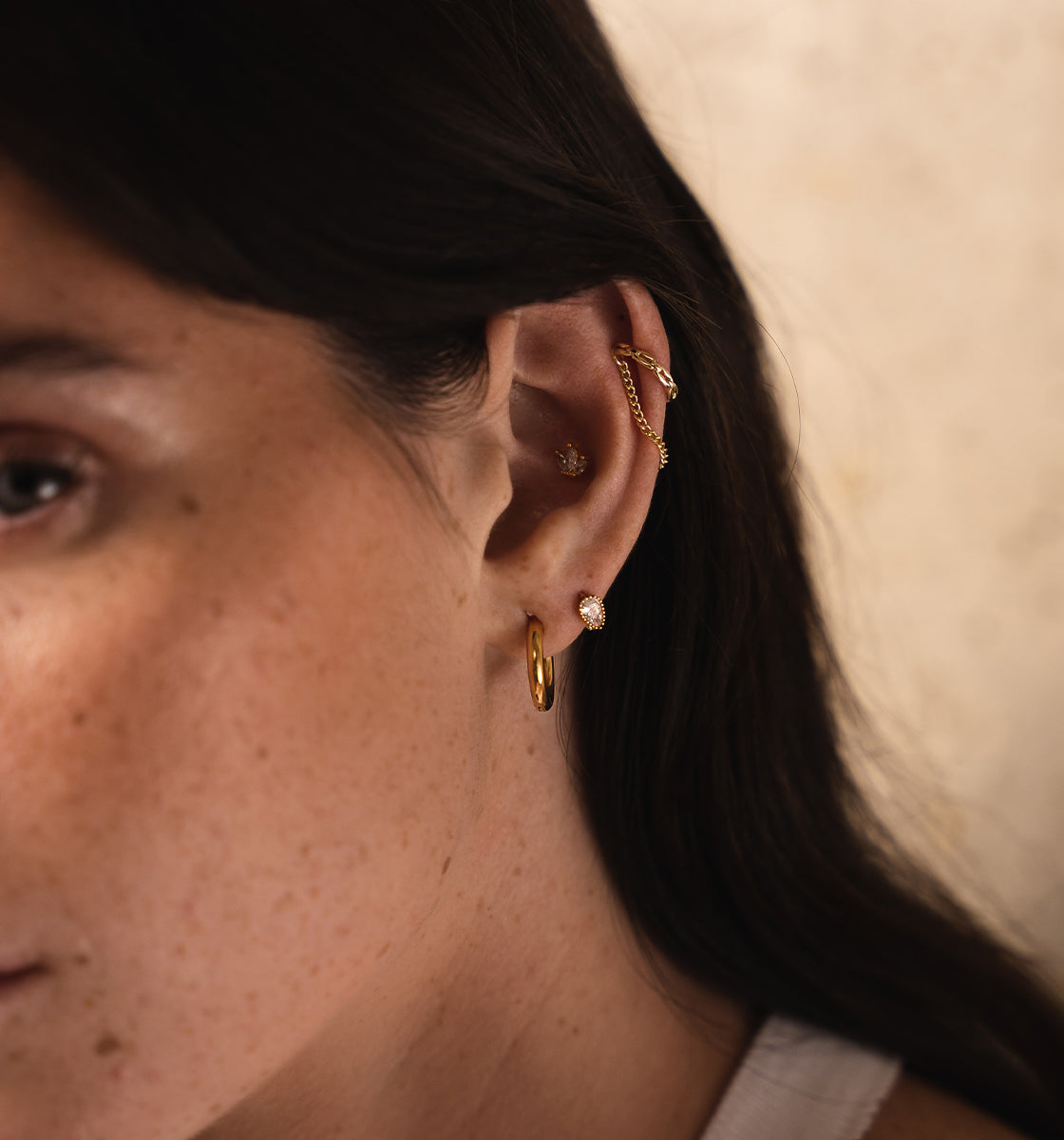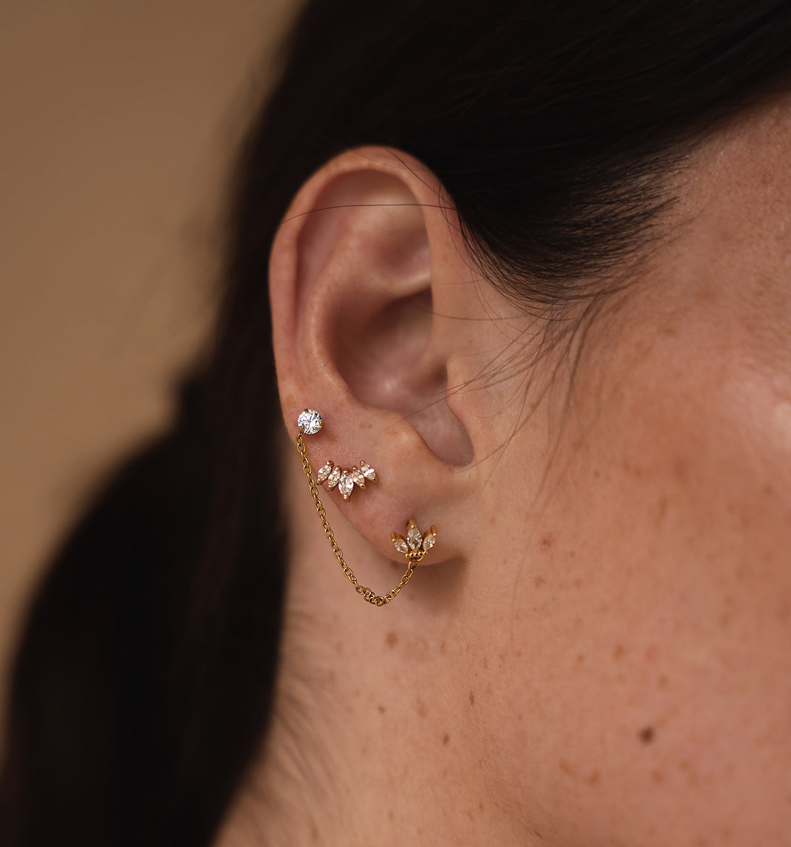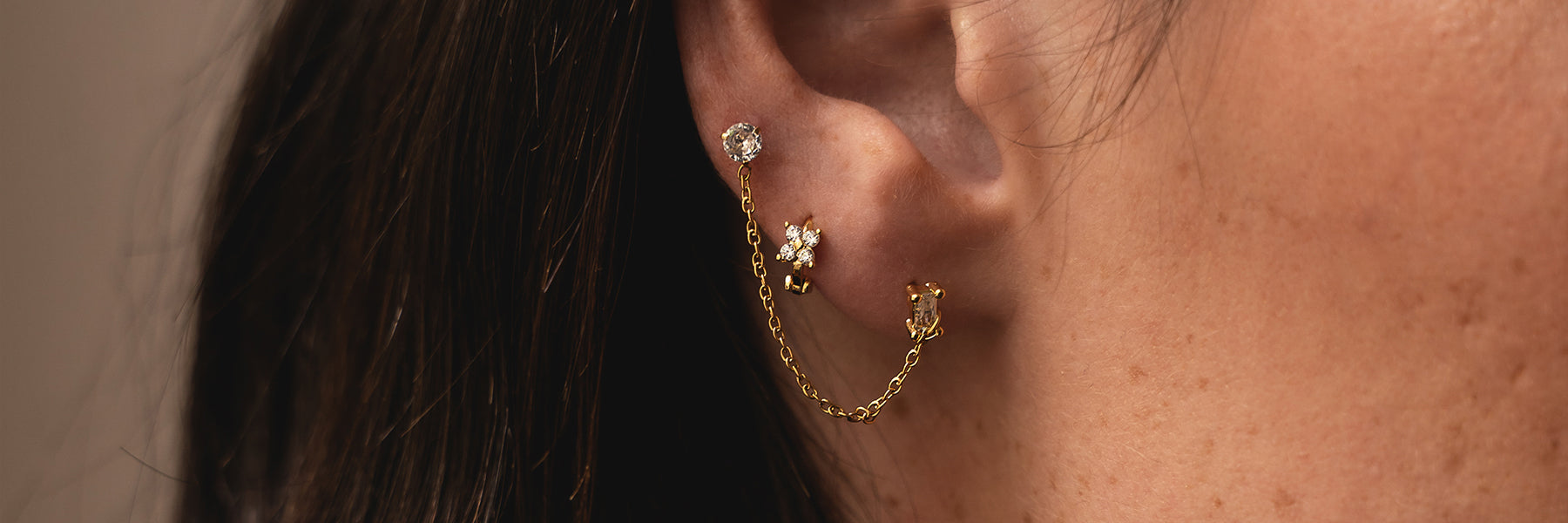 These stainless steel jewels offer a variety of designs: double piercings, mini hoops, and sophisticated ear stud piercings.