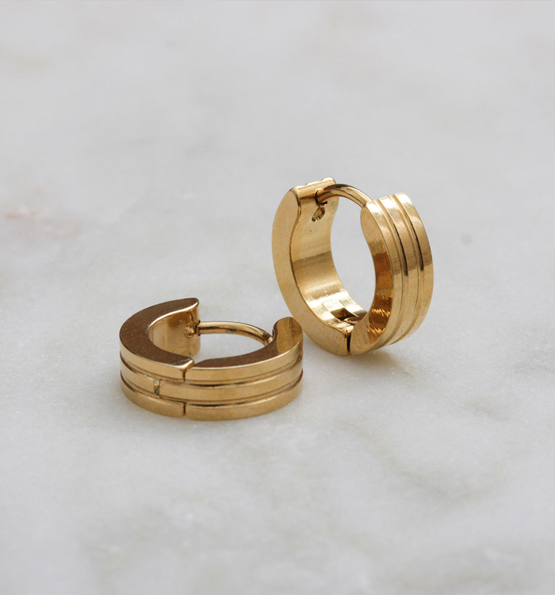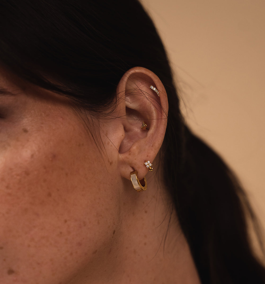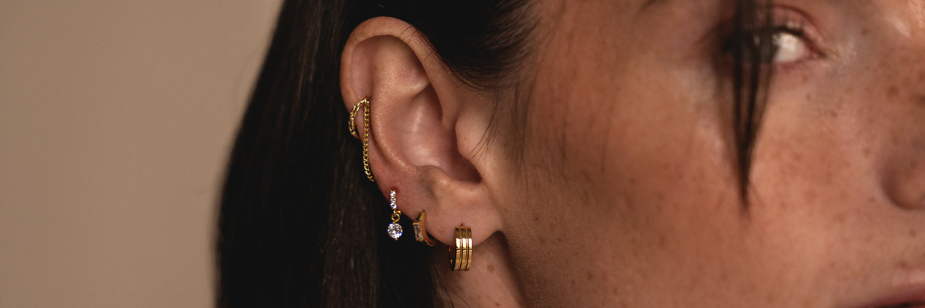 These stainless steel jewels offer a variety of designs: double piercings, mini hoops, and sophisticated ear stud piercings.