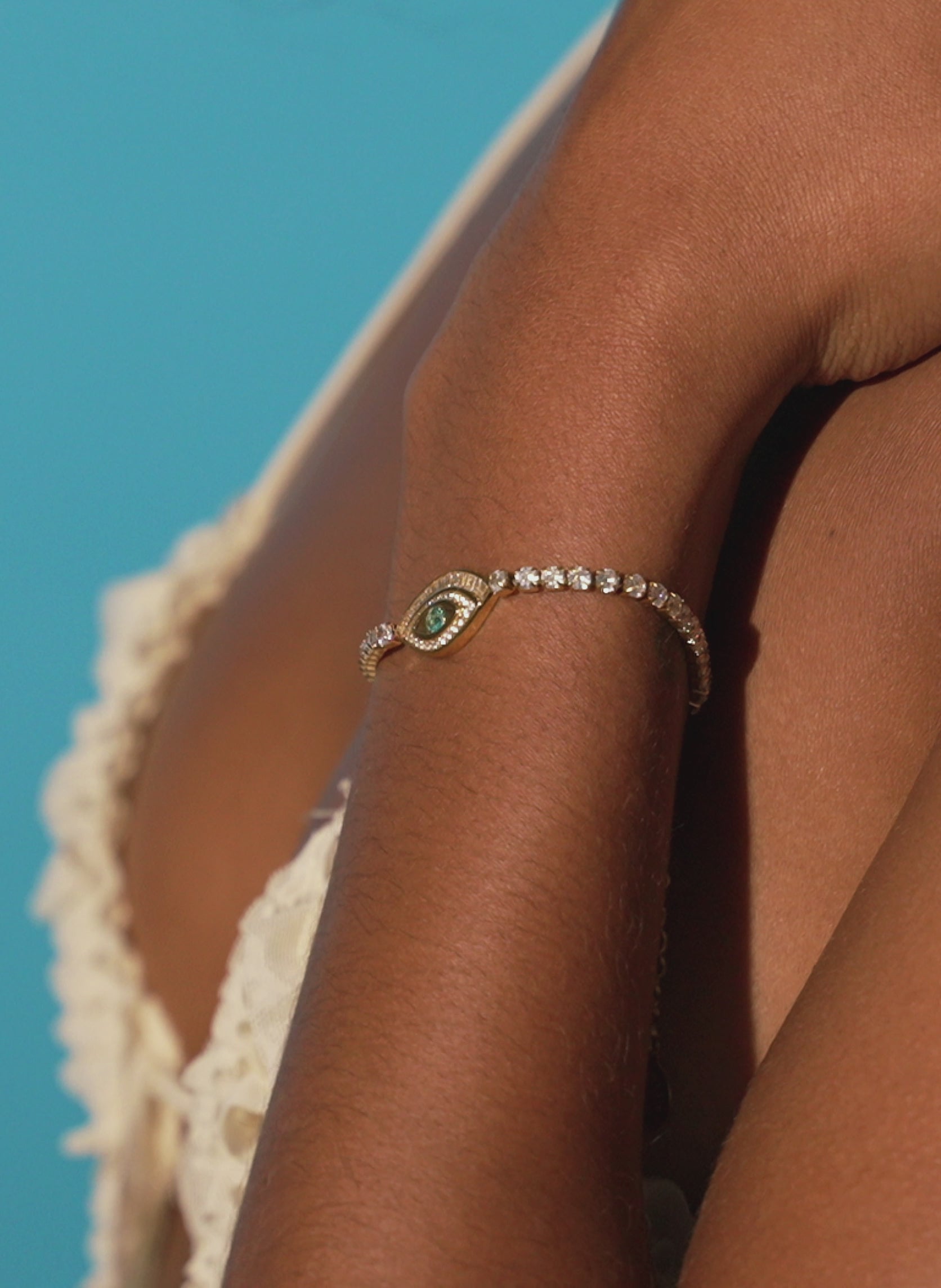 Découvrez la collection EYES, des bijoux ethniques en acier inoxydable avec des zircons jaunes, roses, bleus et verts. Cette collection évoque le pouvoir protecteur et la beauté saisissante de l'oeil, un symbole puissant dans la culture égyptienne.